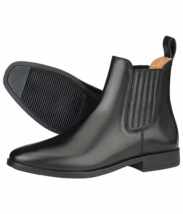Eleganckie jodhpury wykonane z pełnoziarnistej brazylijskiej skóry bydlęcej dla zapewnienia najwyższego komfortu. Podszewka wykonana jest ze świńskiej skóry. Elastyczne wstawki pokryte skórą po obu stronach oraz skórzany ściągacz zapewniają wygodne zakładanie. Wytrzymała gumowa podeszwa o smukłym kształcie nadaje elegancki wygląd, a amortyzująca wkładka z wyjmowaną wkładką gwarantuje najwyższy komfort.