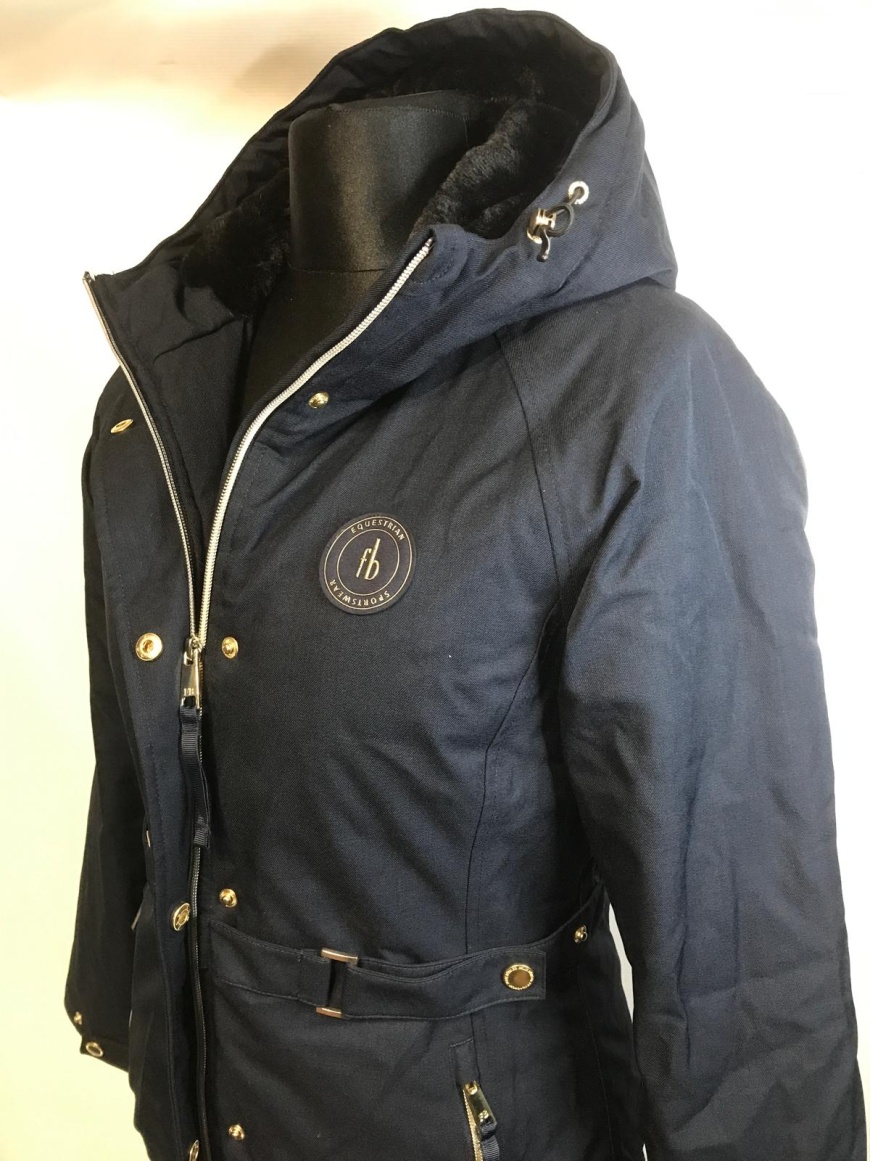 Super funkcjonalna, elegancka kurtka jeździecka z kapturem. Wysoka wodoodporność (5000 mm), wiatroszczelność i oddychalność. Wysokiej jakości materiał wierzchni o melanżowym wyglądzie i przyjemny w dotyku. Wewnątrz pikowana z wypełnieniem z ciepłej imitacji puchu. Regulowany kaptur podszyty pluszowym futerkiem z możliwością wiązania z tyłu, regulowana talia i szerokość rękawów, elastyczne mankiety z otworem na kciuk, 2 kieszenie z przodu na zamek, 1 kieszeń wewnątrz na zamek, kryty dwukierunkowy zamek błyskawiczny z przodu z osłoną podbródka, 2 kieszenie do jazdy konnej rozcięcia z zatrzaskami z tyłu i naszywka Felixa Bühlera na piersi.