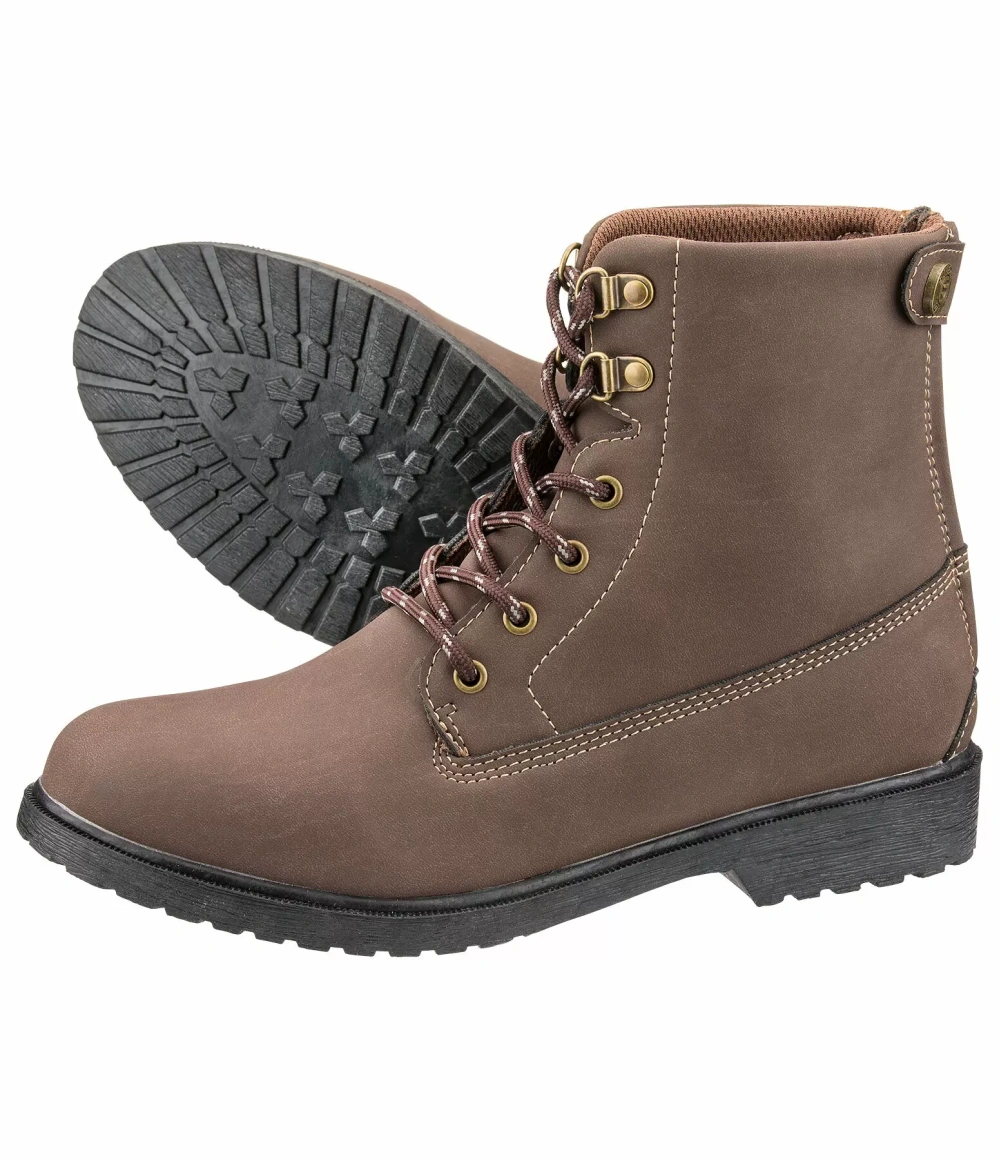 Buty do jazdy konnej i stajni z zamkiem błyskawicznym z tyłu, umożliwiającym szybkie zakładanie i zdejmowanie. Cholewka ze skóry syntetycznej, przewiewna siateczkowa podszewka (100% poliester). Dodatkowe detale to szybkie sznurowanie i gumowa podeszwa.