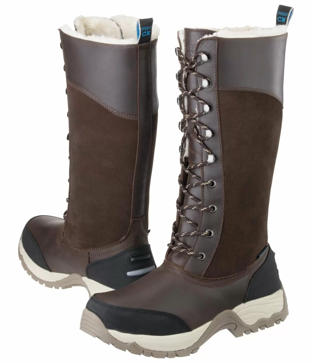 Wodoodporne buty zimowe wykonane z olejowanej, licowej skóry bydlęcej na podeszwie i zamszu na cholewce. Wyściełane ciepłym polarem typu „teddy” (100% poliester). Zintegrowana wodoodporna membrana i język z bocznymi szwami zapobiegają przedostawaniu się śniegu i wody. Wkładka CX Technology zapewnia doskonałą amortyzację i maksymalny komfort. System szybkiego sznurowania ułatwia zakładanie i zdejmowanie. Dodatkowe funkcje obejmują wzmocniony nosek i piętę, podpórkę na ostrogę oraz odblask z tyłu.