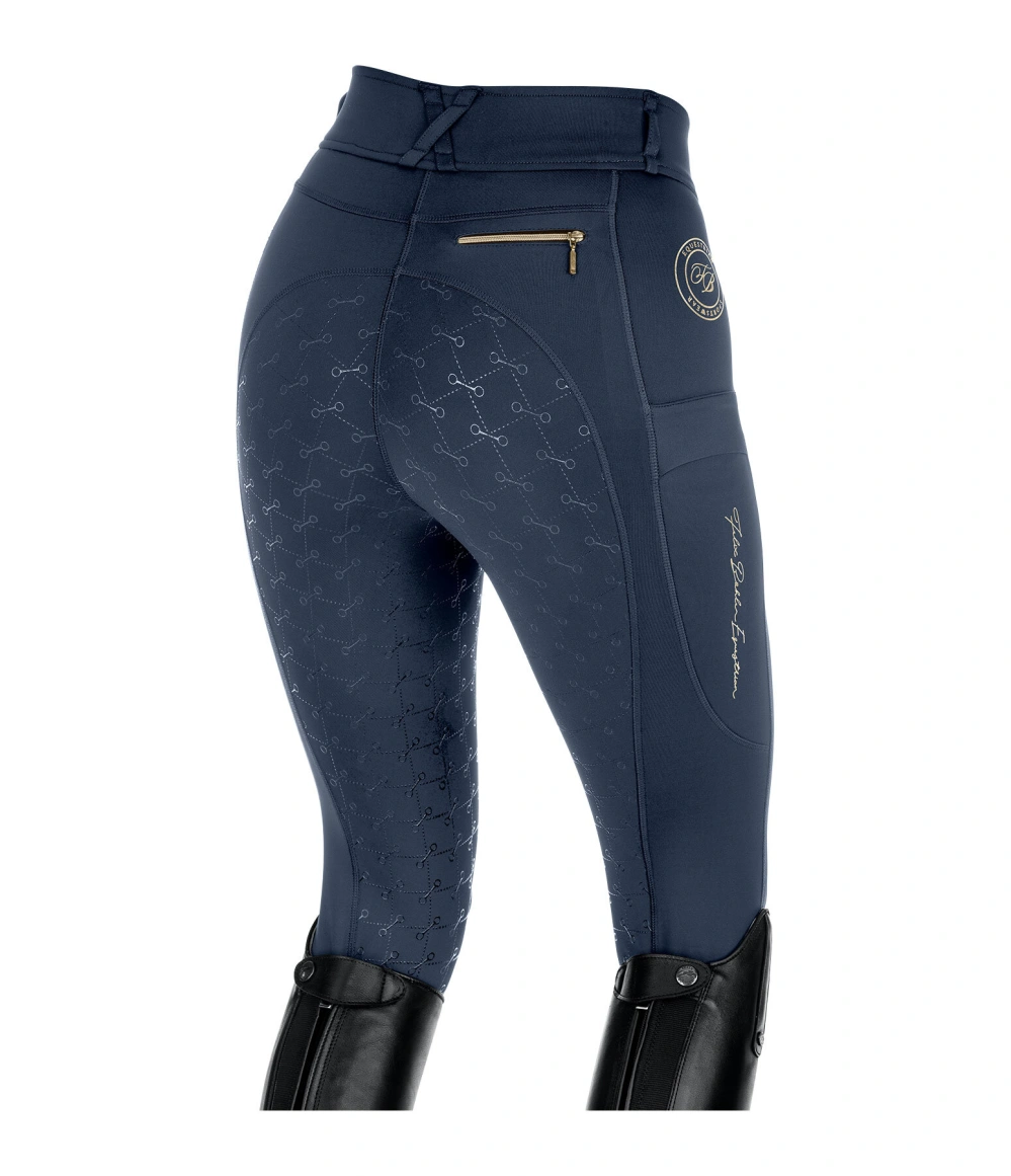 Wyjątkowe bryczesy wykonane z wysokiej jakości, rozciągliwego w czterech kierunkach materiału, zapewniającego idealne wsparcie i idealne dopasowanie. Silikonowy, pełny lej w kształcie wędzideł. Oddychające i szybkoschnące. Bardzo szeroki pas ze szlufkami, 1 tylna kieszeń na zamek, 2 boczne kieszenie na telefon komórkowy, brak szwów na kolanach, elastyczne ściągacze nogawek i brokatowe nadruki Felixa Bühlera. 78% poliester, 22% elastan.