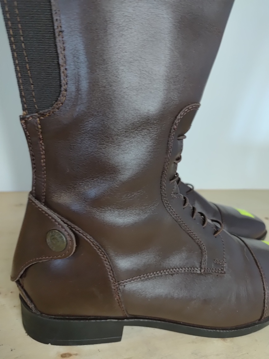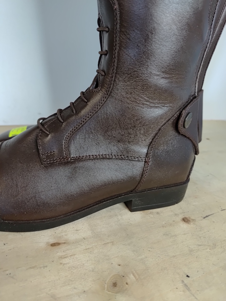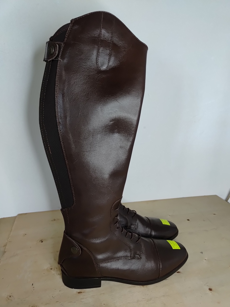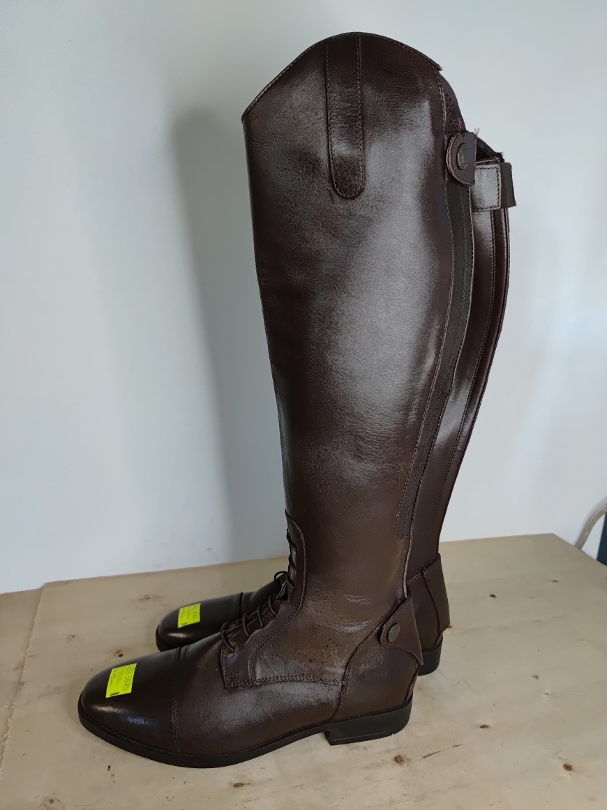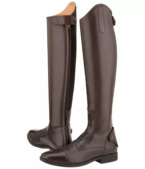 Buty jeździeckie Brasilia zachwycają doskonałym dopasowaniem. Cholewka wykonana z licowej brazylijskiej skóry bydlęcej, która od samego początku jest niezwykle miękka na nodze. Wewnętrzna wyściółka wykonana jest z miękkiej świńskiej skóry. Elastyczne sznurowanie na podbiciu pozwala na smukły krój w kostce i zapewnia maksymalny komfort podczas jazdy i biegania. Wyjątkowo wytrzymały zamek błyskawiczny gwarantuje długą żywotność, zabezpieczenie przed wciśnięciem ostrogi chroni zamek błyskawiczny. Zintegrowana elastyczna wstawka na zewnątrz cholewki umożliwia dopasowanie do indywidualnego kształtu łydki. Solidna gumowa podeszwa o smukłym, kwadratowym kształcie z żebrowanym profilem w obszarze kulki zapewniającym doskonałą przyczepność w strzemieniu. Wyjmowana wkładka posiada amortyzującą piankę na pięcie i zapewnia wysoki poziom komfortu.