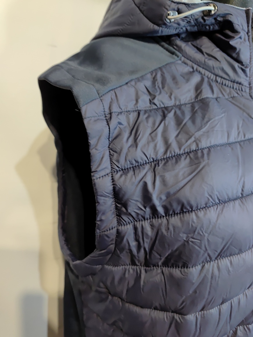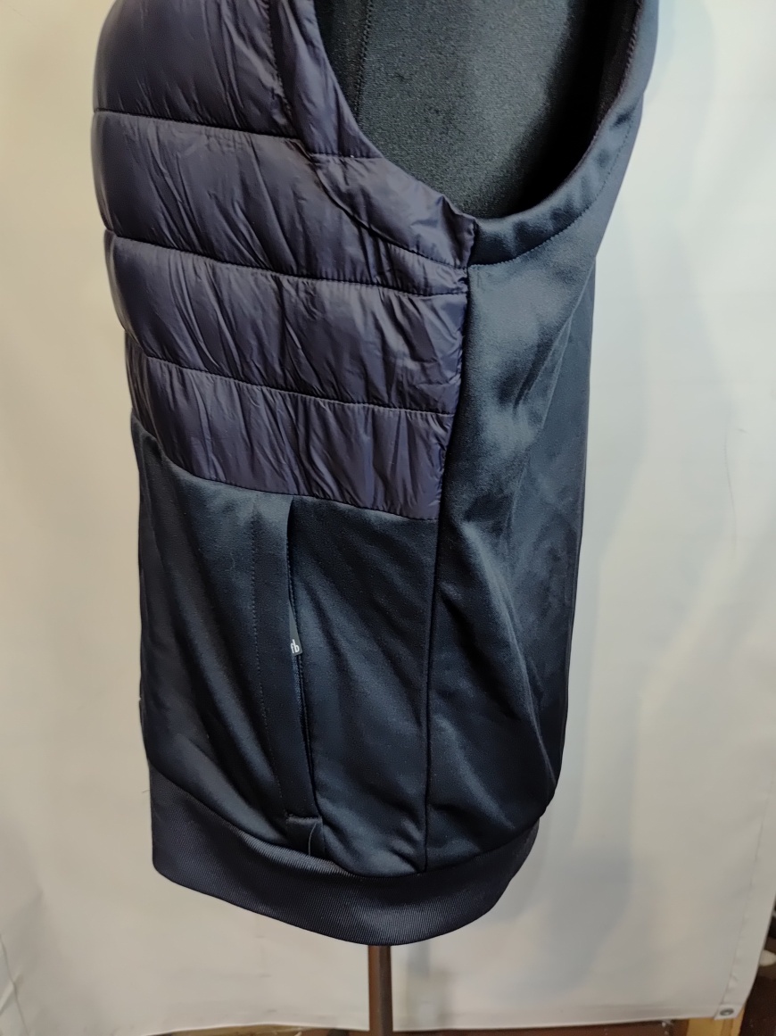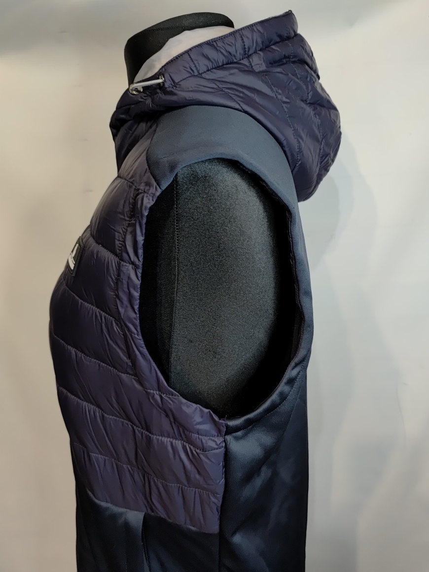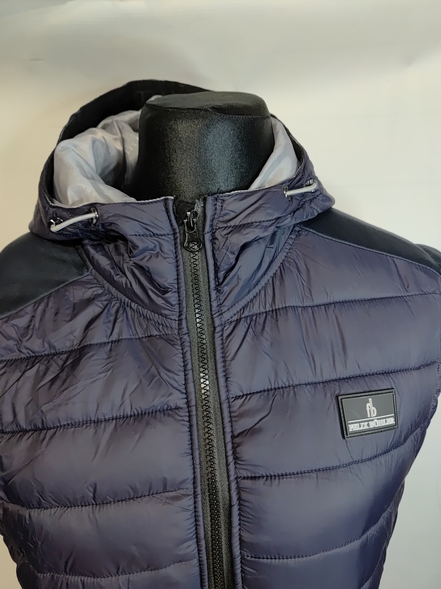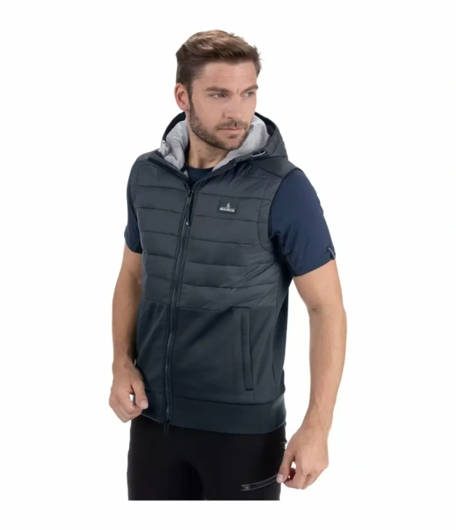 Sportowa, funkcjonalna męska kamizelka jeździecka z lekko wyściełaną częścią piersiową. W kapturze wszyta wstążka z napisem FB. Kaptur jest regulowany za pomocą elastycznej gumki. Z dwukierunkowym zamkiem błyskawicznym i 2 kieszeniami z przodu zapinanymi na zamek.