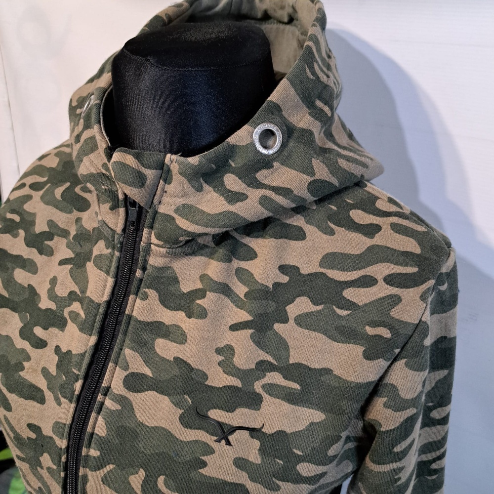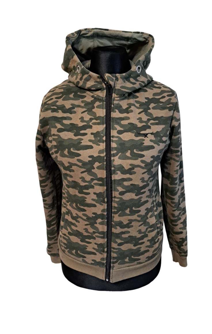 Stan używany. Posiada drobne zmechacenia. Brak sznurka w kapturze.