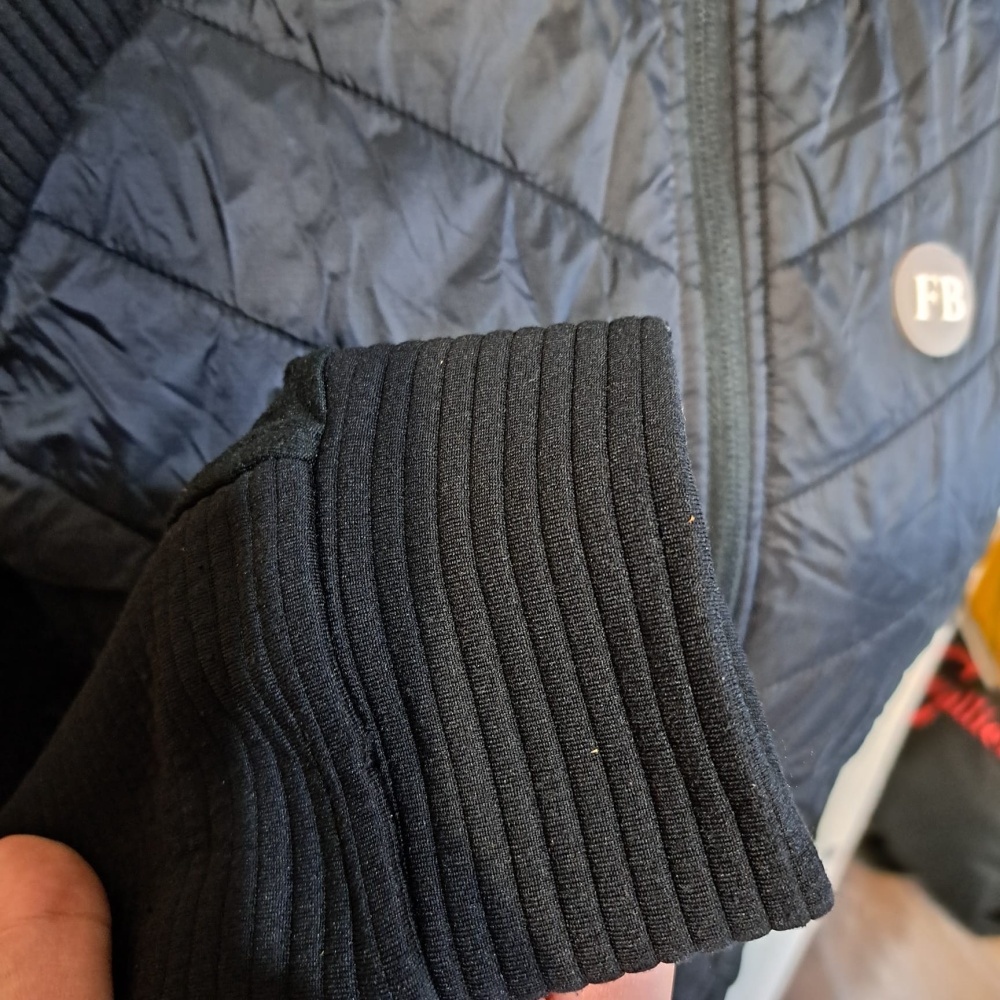 Świetne połączenie wytrzymałego, lekko wyściełanego i wiatroszczelnego nylonu i niezwykle elastycznego, rozciągliwego materiału. Rozciągliwy materiał jest oddychający, zapewnia idealne dopasowanie, optymalną swobodę ruchów i dlatego jest idealny do jazdy. Raglanowe rękawy, strukturyzowane wstawki na rękawach, podszyty zamek błyskawiczny z osłoną podbródka, 2 przednie kieszenie zapinane na zamek i plakietka Felixa Bühlera na piersi. Kaptur z elastycznym mankietem i wstawką o podobnej strukturze.