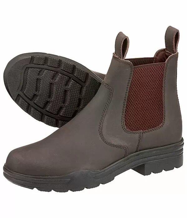 Wsuwane botki wykonane ze skóry i oddychającej tekstylnej wyściółki. Elastyczne wstawki po obu stronach oraz dwie pętle do ściągania umożliwiają szybkie zakładanie i zdejmowanie. Profilowana podeszwa z piętą jezdną wykonana została z antypoślizgowej gumy.