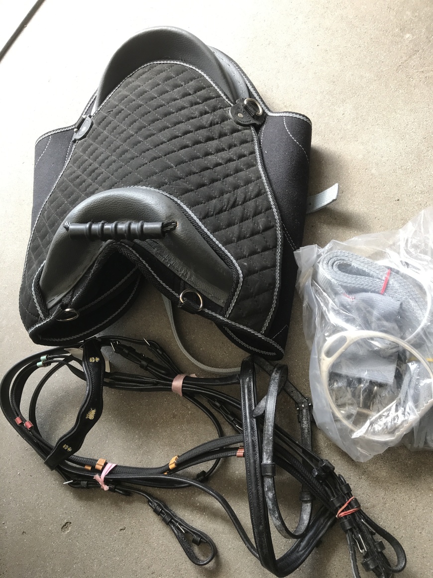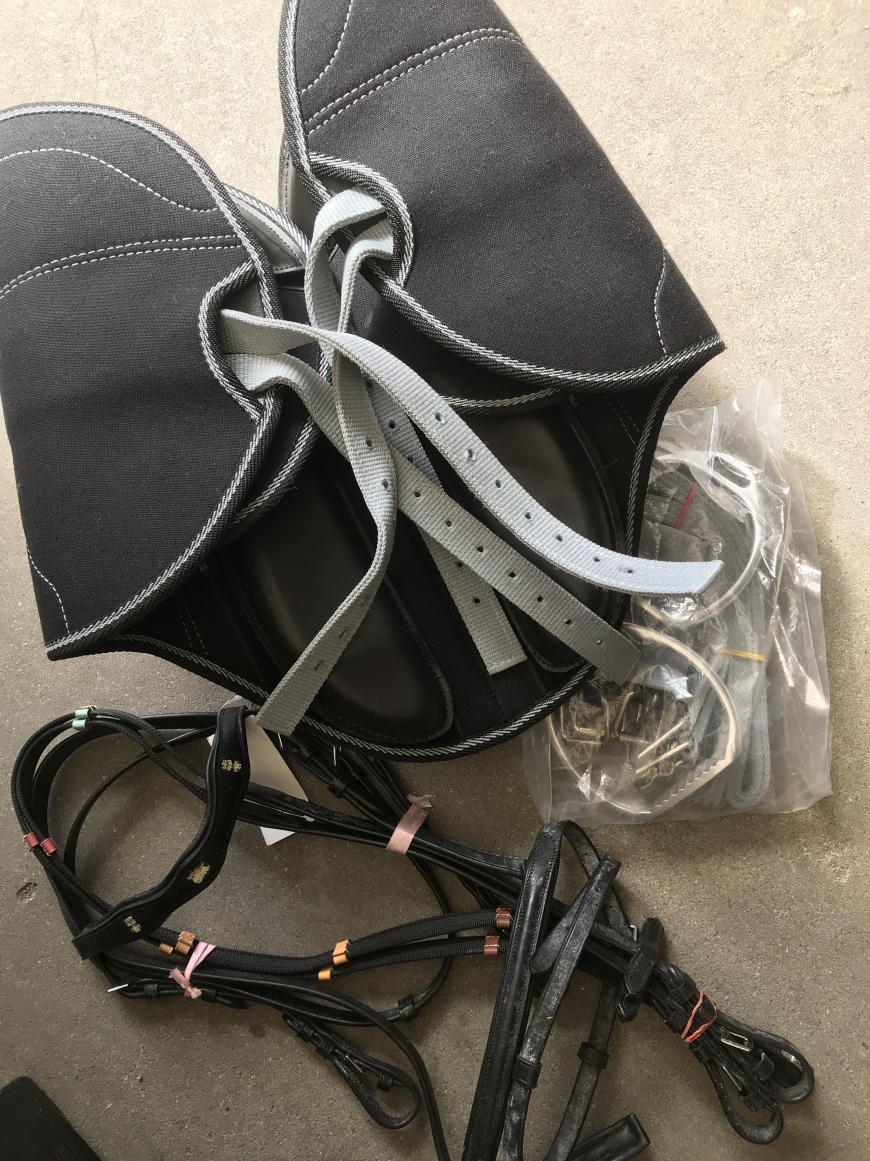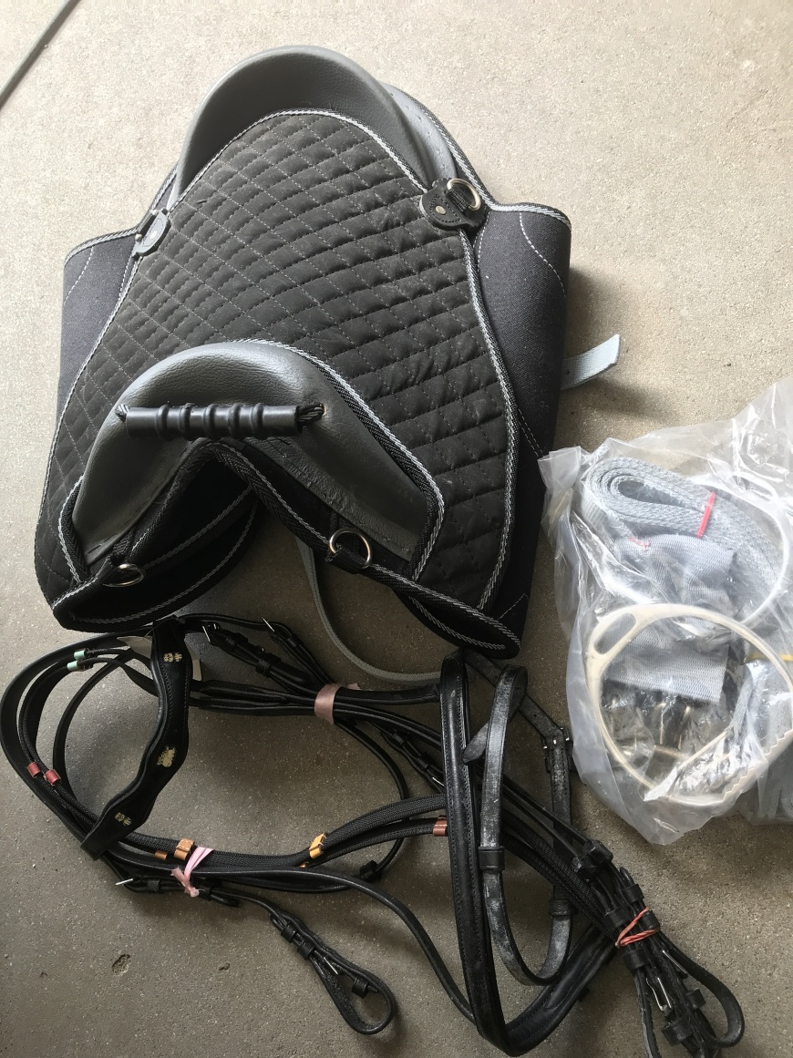 Siodło dla kucyków dla dzieci, w komplecie z akcesoriami. Podkładka dla kucyków, odpowiednia dla dzieci z siedziskiem 16.5". Bardzo lekkie, z miękką wyściółką i z przodu i z tyłu do góry. Gumowana rączka dla pewnego chwytu. Kłąb zmienny dzięki łożyskom, wymienny kłąb, przednie miejsce na kolano z rzepem, szlufki na podogonie, nylonowe sprzężenie zwrotne. W zestawie rączka, popręgi, strzemiona i puśliska.