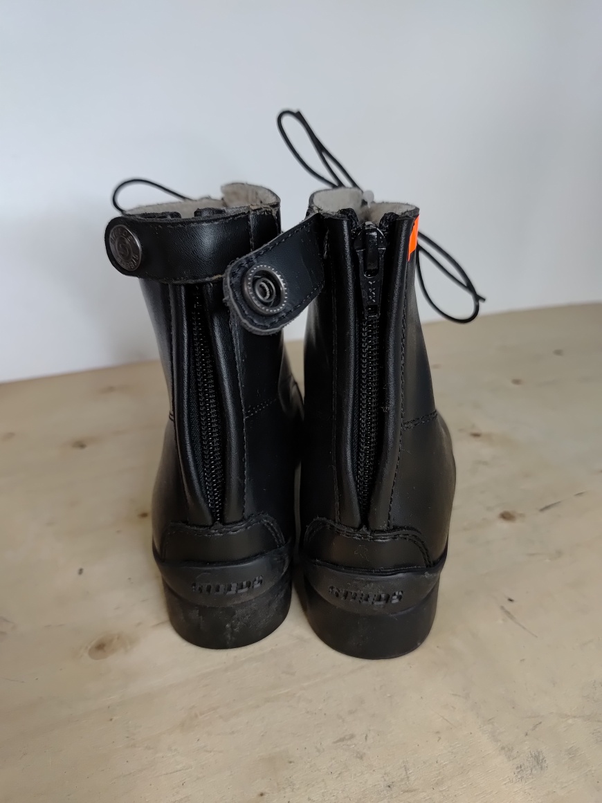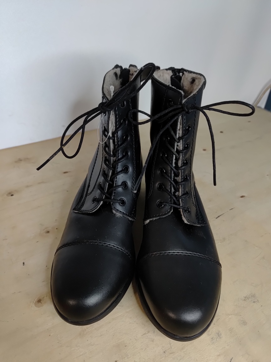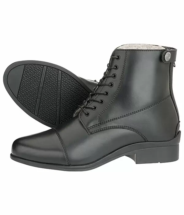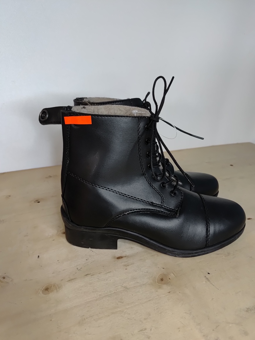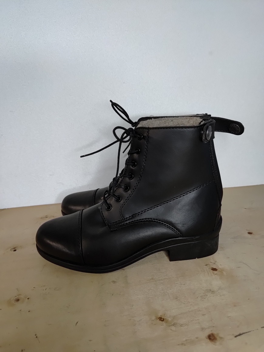 Sznurowane botki z miękkiej cholewki, wyściełane ciepłym polarem typu „teddy” i zapinane na suwak z tyłu, co ułatwia szybkie zakładanie i zdejmowanie. Teraz ze sportową podeszwą i ulepszonym dopasowaniem. Nowo zaprojektowana gumowa podeszwa zewnętrzna z piętą, odpowiednia do jazdy konnej, zapewnia niezbędną przyczepność.