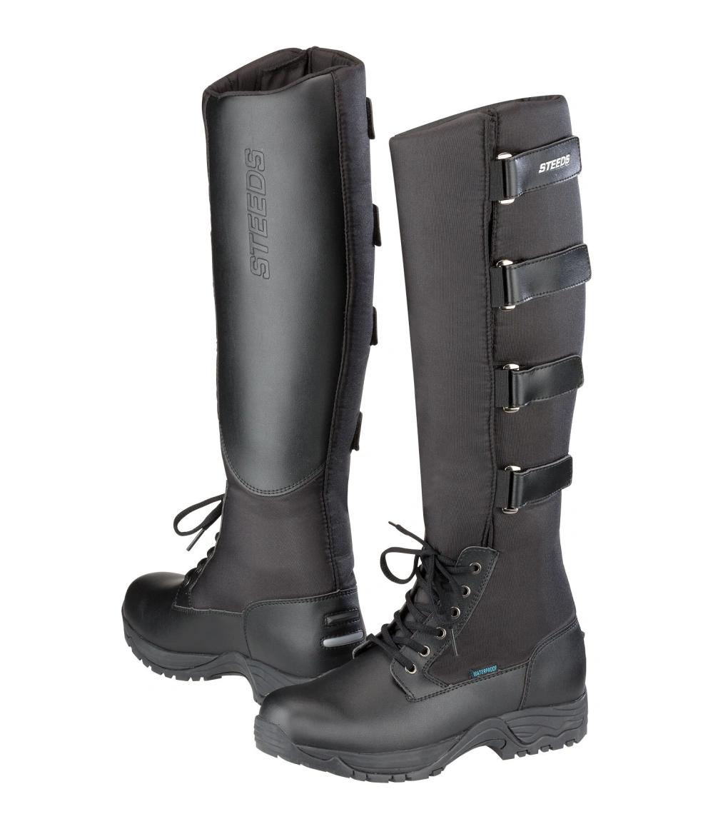 Wodoodporne buty termiczne z wbudowaną izolacją termiczną i wysokiej jakości polarową wyściółką (100% poliester). Teraz z jeszcze lepszą wkładką dzięki podeszwie Double Layer, składającej się z amortyzującej podeszwy środkowej i odpornej na ścieranie podeszwy zewnętrznej. Zintegrowana wodoodporna membrana utrzymuje stopy w suchości. Cholewka wykonana jest z wytrzymałego nylonu, a część stopy z miękkiego, a zarazem sprężystego poliuretanu. Wzmocnienie w łydce po wewnętrznej stronie zapewnia doskonałą przyczepność do tybinki siodła. Doskonały komfort noszenia i trzymanie stopy zapewniają nowy kształt, sznurowanie z przodu, cztery rzepy na cholewce oraz trzy warianty cholewki. Z tyłu znajdują się uchwyty na ostrogi i zintegrowany odblask.