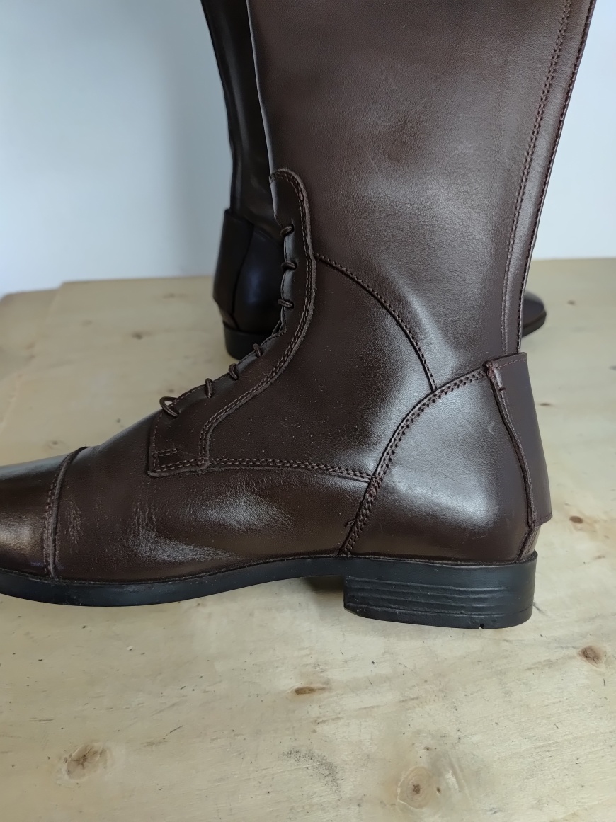 Buty jeździeckie Brasilia zachwycają doskonałym dopasowaniem. Cholewka wykonana z licowej brazylijskiej skóry bydlęcej, która od samego początku jest niezwykle miękka na nodze. Wewnętrzna wyściółka wykonana jest z miękkiej świńskiej skóry. Elastyczne sznurowanie na podbiciu pozwala na smukły krój w kostce i zapewnia maksymalny komfort podczas jazdy i biegania. Wyjątkowo wytrzymały zamek błyskawiczny gwarantuje długą żywotność, zabezpieczenie przed wciśnięciem ostrogi chroni zamek błyskawiczny. Zintegrowana elastyczna wstawka na zewnątrz cholewki umożliwia dopasowanie do indywidualnego kształtu łydki. Solidna gumowa podeszwa o smukłym, kwadratowym kształcie z żebrowanym profilem w obszarze kulki zapewniającym doskonałą przyczepność w strzemieniu. Wyjmowana wkładka posiada amortyzującą piankę na pięcie i zapewnia wysoki poziom komfortu.
