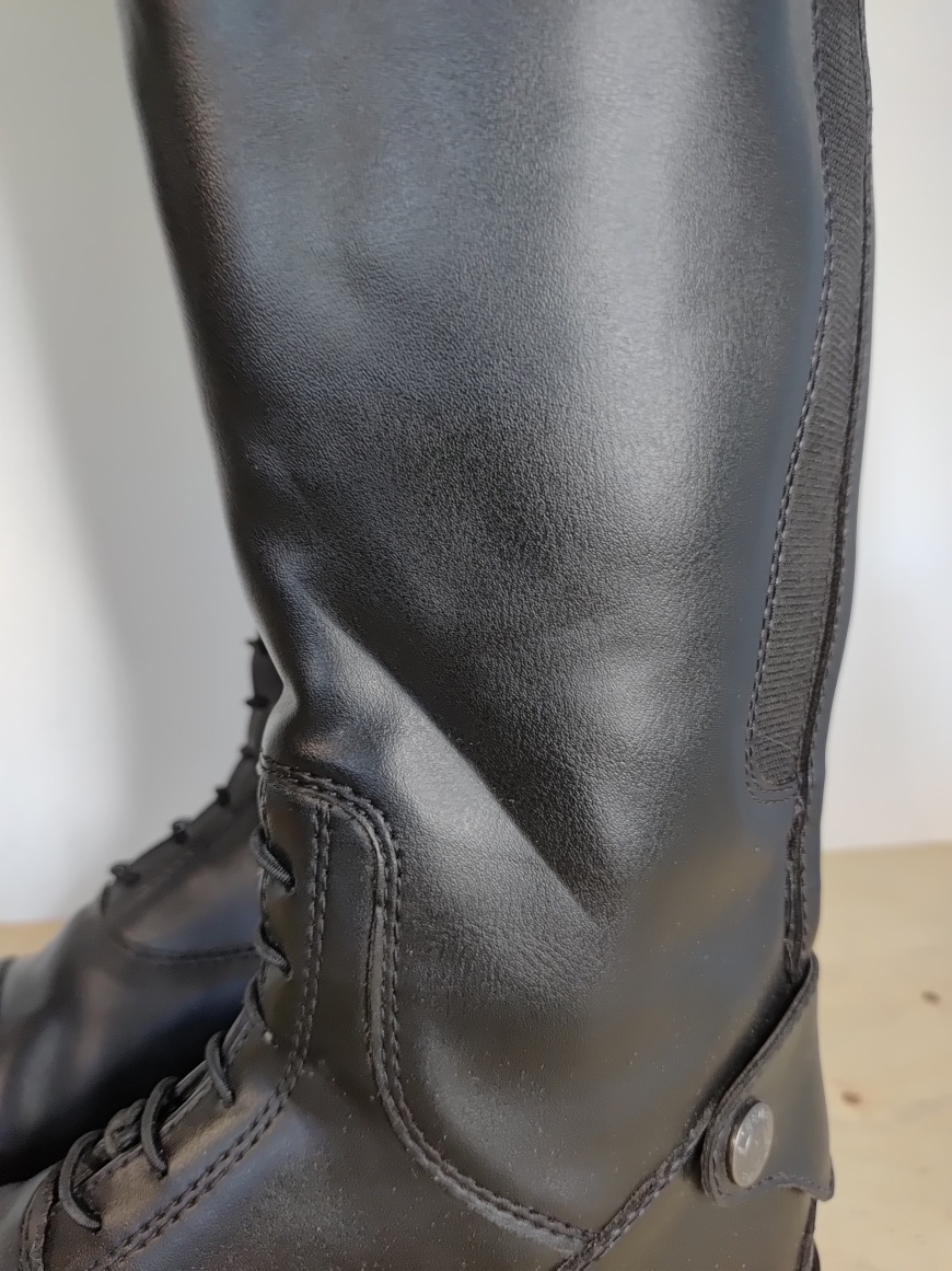 Wewnątrz całkowicie podszyte ocieplającym polarem pluszowym. Anatomicznie ukształtowany obszar kostki z elastycznym sznurowaniem i elastycznymi wstawkami po obu stronach cholewki zapewniają optymalne dopasowanie i wysoki poziom komfortu. Długi zamek z tyłu jest teraz również pokryty ochroną przed ostrogami. Nowością jest także sportowa podeszwa zewnętrzna, lepsze dopasowanie do stopy, podwyższony łuk ujeżdżeniowy i ulepszony zatrzask na górnym końcu cholewki.