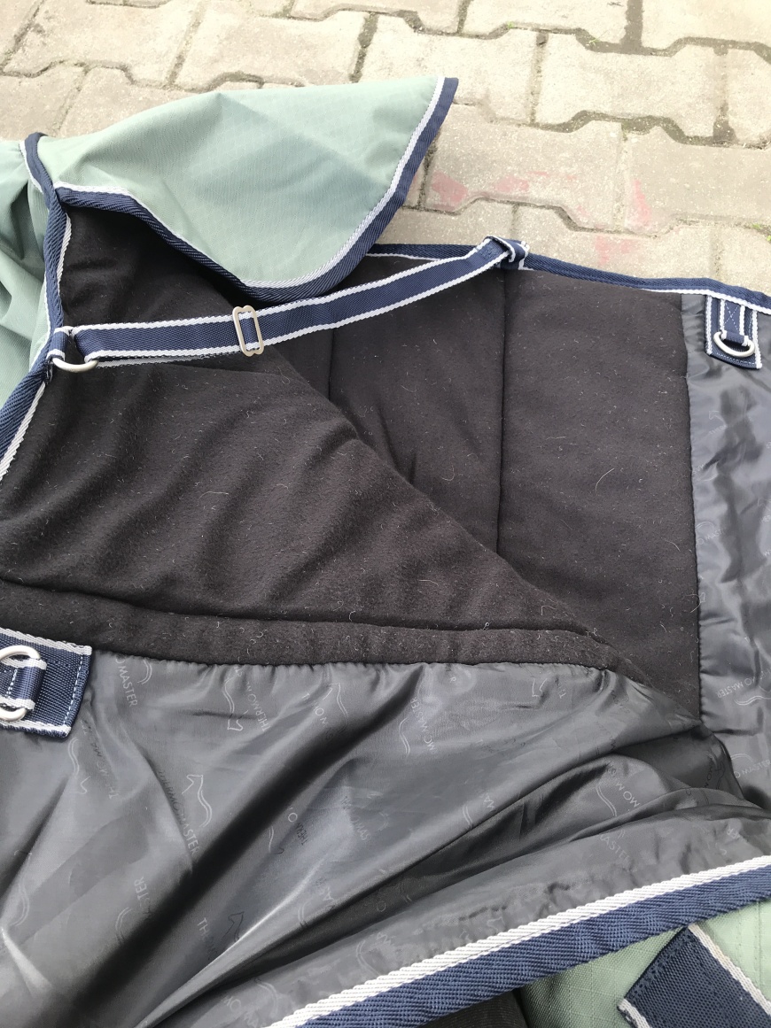 Innowacyjna zimowa derka z wysokim kołnierzem chroniącym przed przenikaniem wody i zapobiegającym otarciom w okolicy kłębu. Miękkie naramienniki (polar wewnątrz) po bokach zapewniają optymalne rozłożenie nacisku nawet przy opuszczonej głowie. Wykonana z oddychającego i wodoodpornego materiału Ripstop 600 den (3000 mm WP) z dyskretnym wytłoczonym znakiem wodnym. Ciepłe wypełnienie 200 g. Miękka polarowa podszewka (bez dodatkowego wypełnienia) oraz gładka, przyjazna dla sierści podszewka w okolicy ramion i klatki piersiowej. Podwójne, regulowane zapięcie z przodu z kółkami typu D i karabińczykami, a także dodatkowe zapięcie na rzepy i regulowane paski poprzeczne. W zestawie urządzenie do opcjonalnego mocowania linek na nogi, regulowany pasek na ogon i klapa na ogon. 100% poliester.