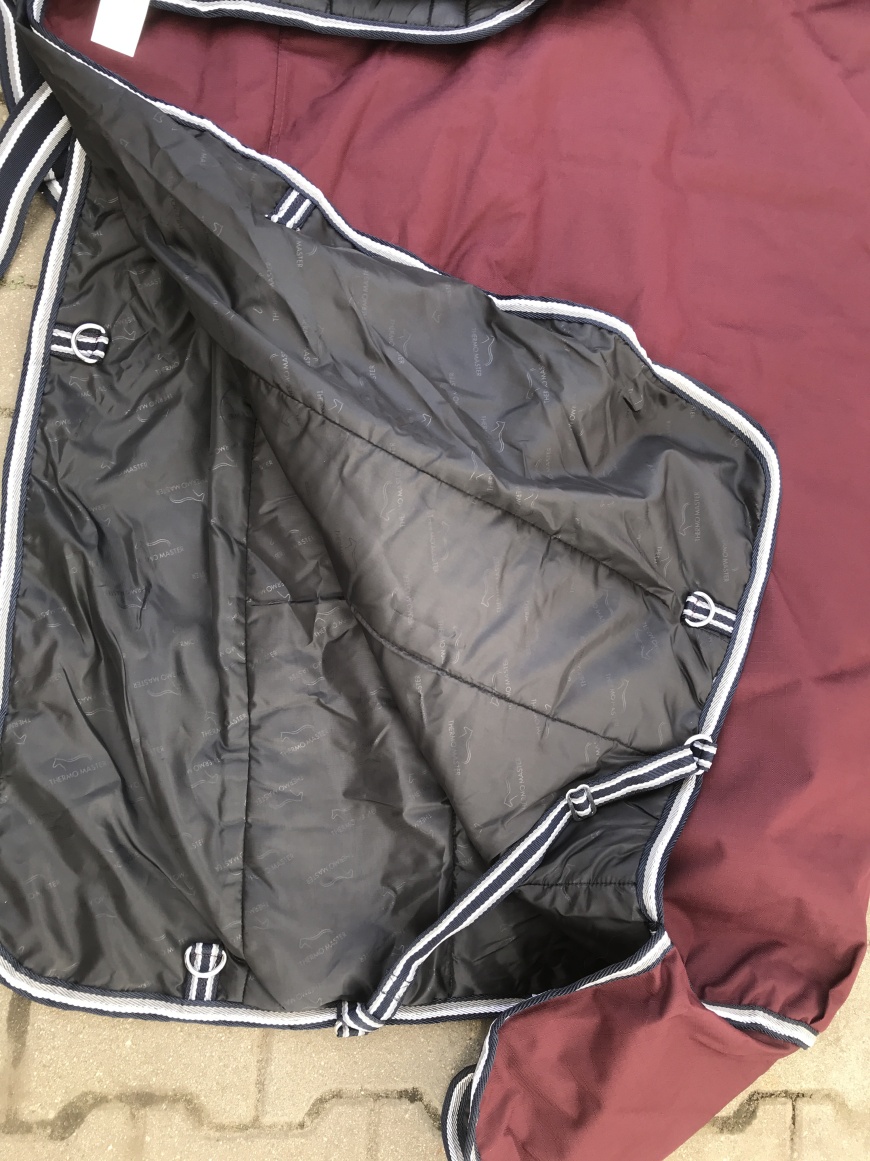 Klasyczny, wodoodporny i oddychający, gruby koc wykonany z materiału ripstop o grubości 600 denierów (3000 mm WP) z ocieplającym wypełnieniem 200 g. Z klinami dla optymalnej swobody ruchów, podwójnym zapięciem na piersi w kształcie litery T z dodatkowym rzepem, regulowanymi pasami krzyżowymi i klapą na ogon. W zestawie urządzenie do mocowania sznurków na nogi i regulowana klapa na ogon. Z wyściółką na kłębie, aby uniknąć ucisku i otarć. Gładka, przyjazna dla sierści podszewka. 100% poliester.