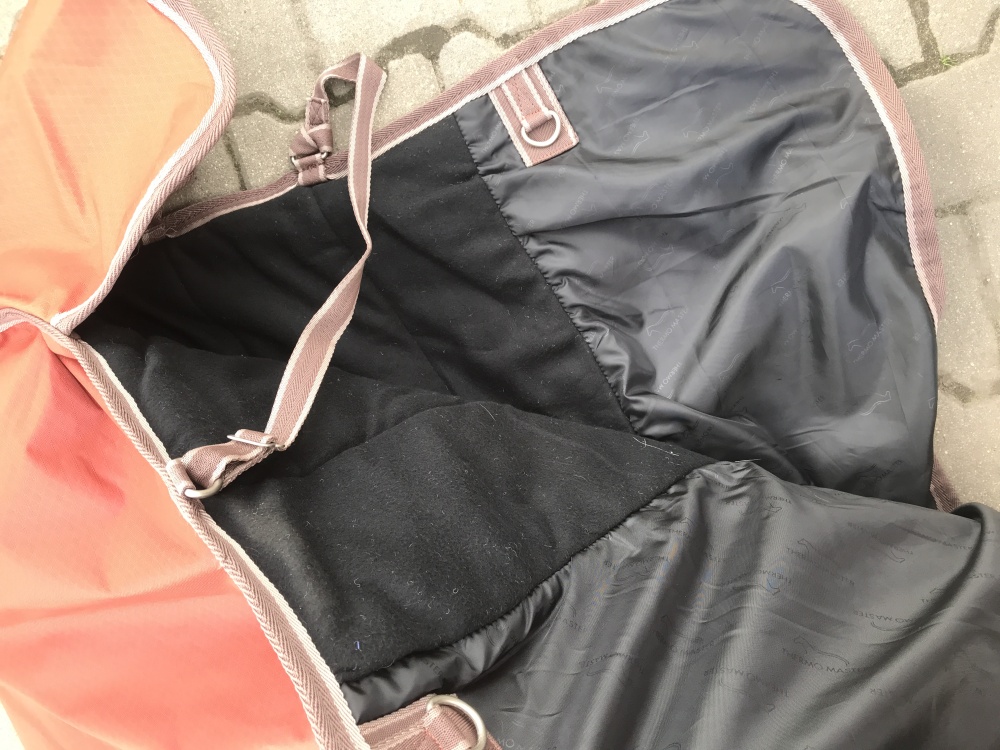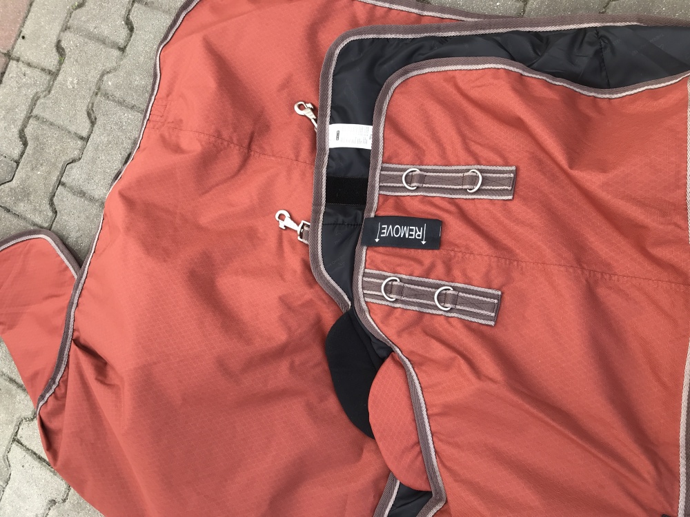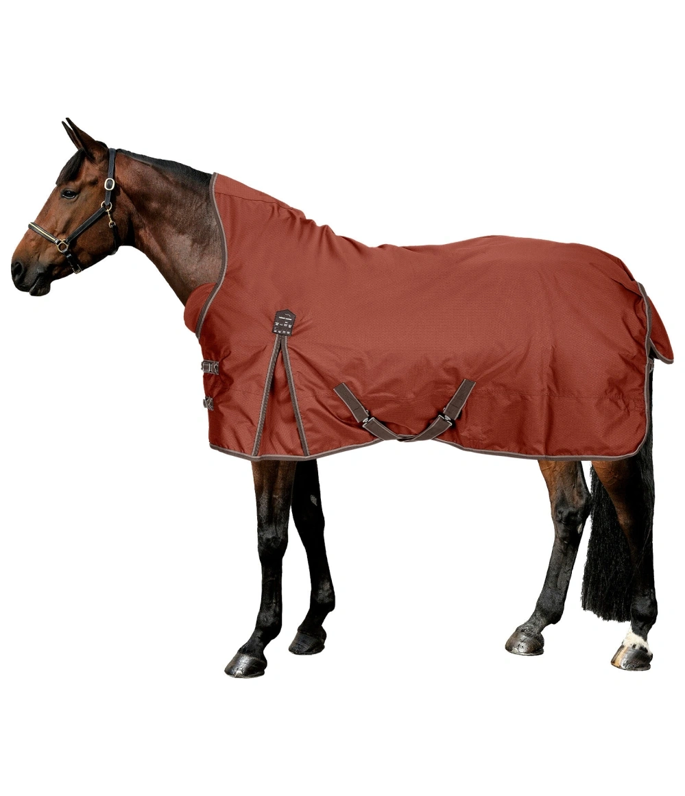 Innowacyjna zimowa derka z wysokim kołnierzem chroniącym przed przenikaniem wody i zapobiegającym otarciom w okolicy kłębu. Miękkie naramienniki (polar wewnątrz) po bokach zapewniają optymalne rozłożenie nacisku nawet przy opuszczonej głowie. Wykonana z oddychającego i wodoodpornego materiału Ripstop 600 den (3000 mm WP) z dyskretnym wytłoczonym znakiem wodnym. Ciepłe wypełnienie 200 g. Miękka polarowa podszewka (bez dodatkowego wypełnienia) oraz gładka, przyjazna dla sierści podszewka w okolicy ramion i klatki piersiowej. Podwójne, regulowane zapięcie z przodu z kółkami typu D i karabińczykami, a także dodatkowe zapięcie na rzepy i regulowane paski poprzeczne. W zestawie urządzenie do opcjonalnego mocowania linek na nogi, regulowany pasek na ogon i klapa na ogon. 100% poliester.