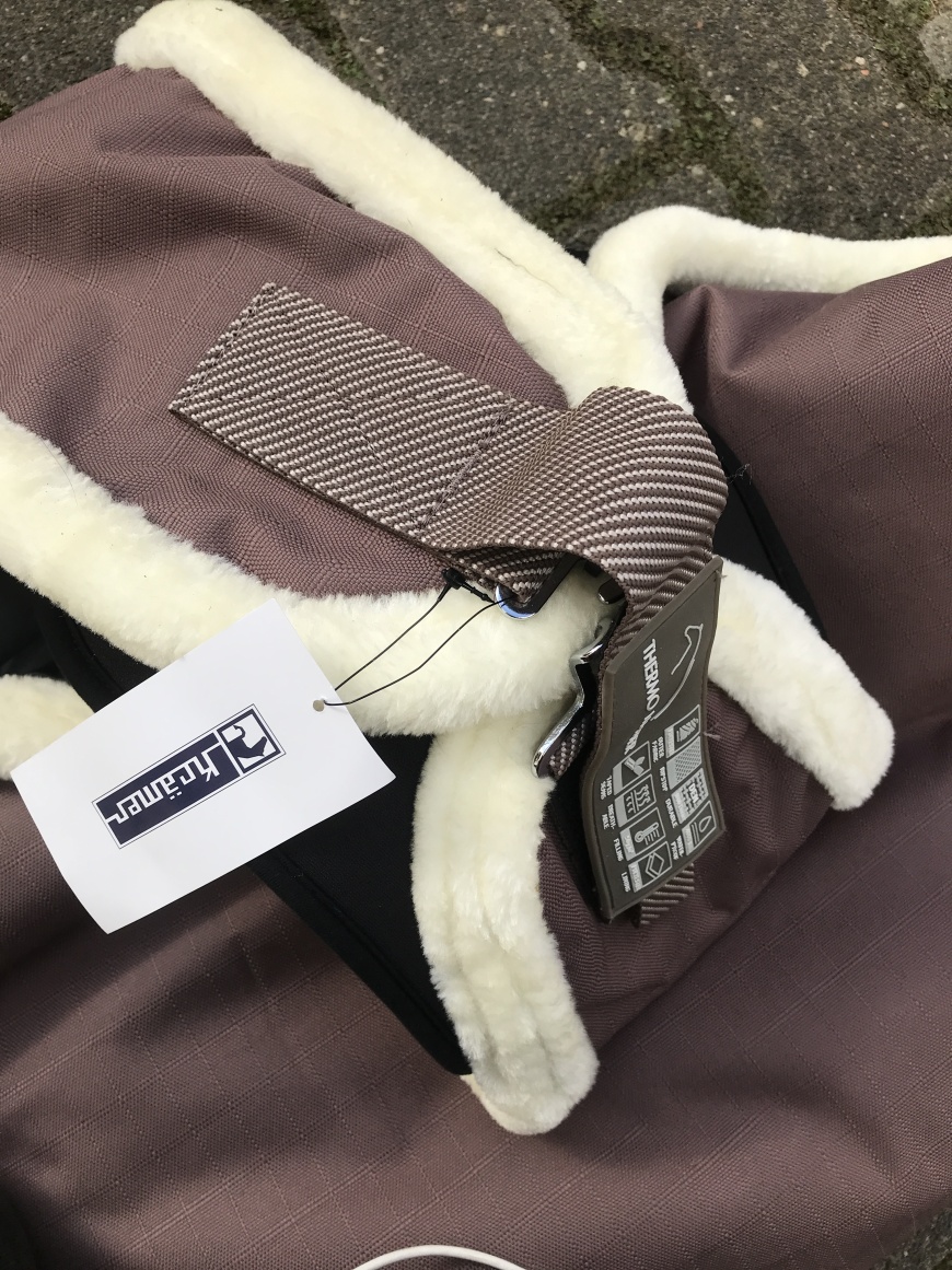 Dla maksymalnej swobody ruchów: Ten wodoodporny i oddychający chodzik outdoorowy ma duże wycięcie w okolicy przedniej nogi, wykonany z materiału ripstop o grubości 1000 denierów (słup wody 4000 mm) i lekkiej wyściółki 50 g. Niezawodnie chroni okolice nerek i tułów przed wilgocią i wiatrem. Posiada ochronne, polarowe wykończenie w okolicy ramion i klatki piersiowej, zapięcie na haftkę w kształcie litery T z dodatkową osłoną podbródka oraz wyściółkę z gumy chloroprenowej w okolicy klatki piersiowej. Idealny do lonżowania, spacerów lub jazdy w karuzeli dla koni. W zestawie regulowane pasy krzyżowe i regulowany pasek podpośladkowy. Gładka, przyjazna dla sierści podszewka. 100% poliester.