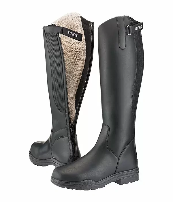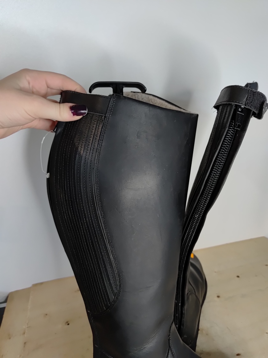 Długie zimowe buty jeździeckie. Wewnętrzna podszewka z ocieplającego polaru typu teddy. Ukryte elastyczne wstawki po obu stronach i wzdłuż zamka z tyłu umożliwiają dopasowanie do indywidualnego konturu łydki. Niezwykle wytrzymały zamek błyskawiczny gwarantuje długotrwałą trwałość. Solidna podeszwa z bieżnikiem z piętą odpowiednią do jazdy wykonana jest z antypoślizgowej gumy.