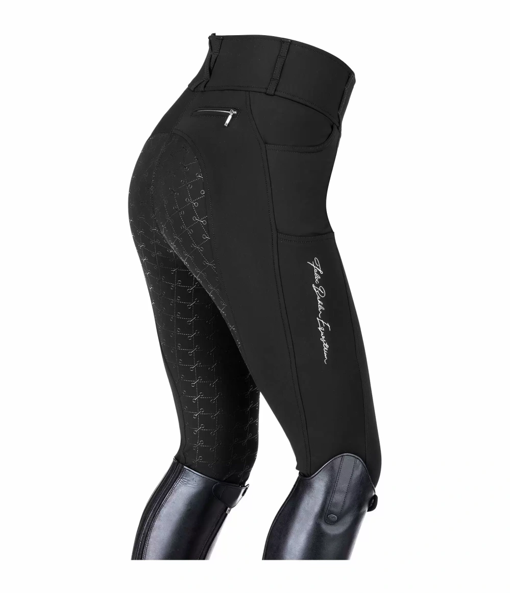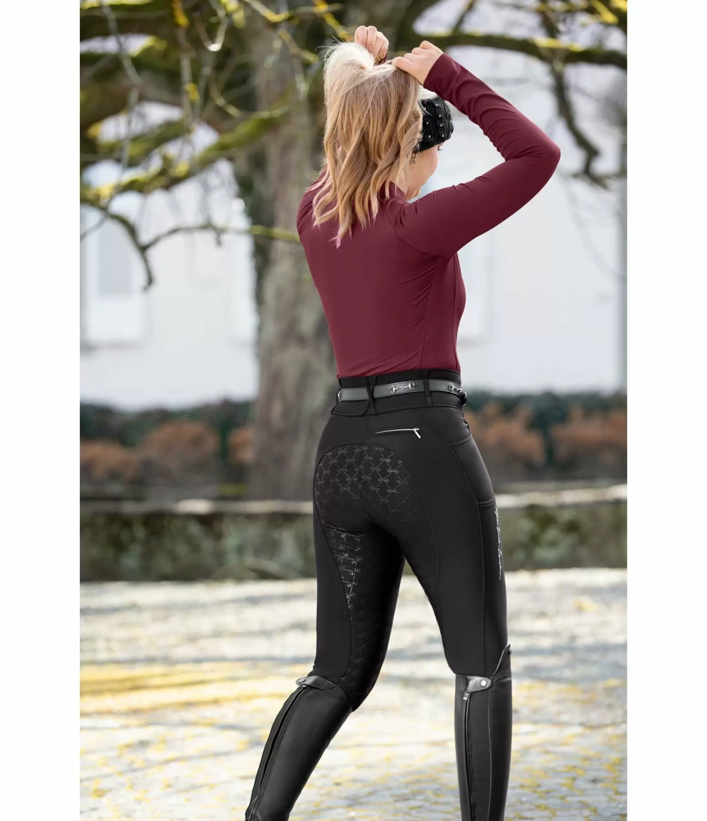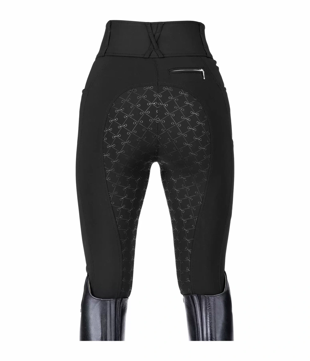 Ciepłe, elastyczne bryczesy jeździeckie z pełnym silikonowym lejem w fasonie bit. Oddychające i wiatroszczelne. Wygodna, miękka podszewka. Haft Felix Bühler na nogawce, jedna kieszeń tylna zapinana na zamek, jedna kieszeń boczna na telefon komórkowy na nogawce, dwie kieszenie z przodu, szeroka gumka w pasie z dwoma guzikami, bez szwów na kolanach, elastyczne nogawki z elastycznego materiału. 77% poliamid, 23% elastan.